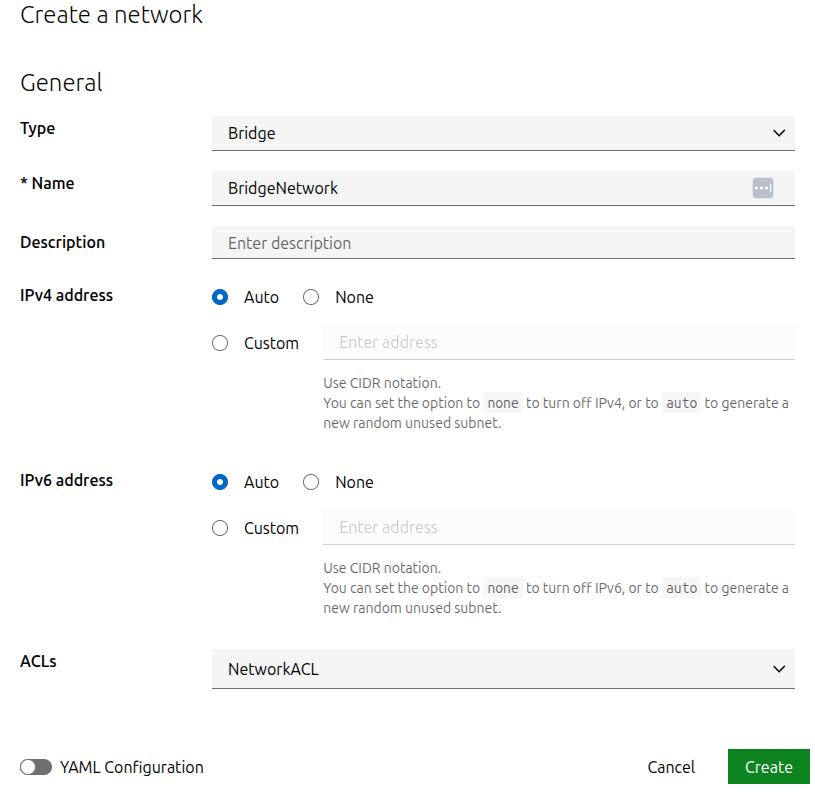 To create a managed network, use the lxc network command and its subcommands. Append --help to any command to see more information about its usage and available flags.